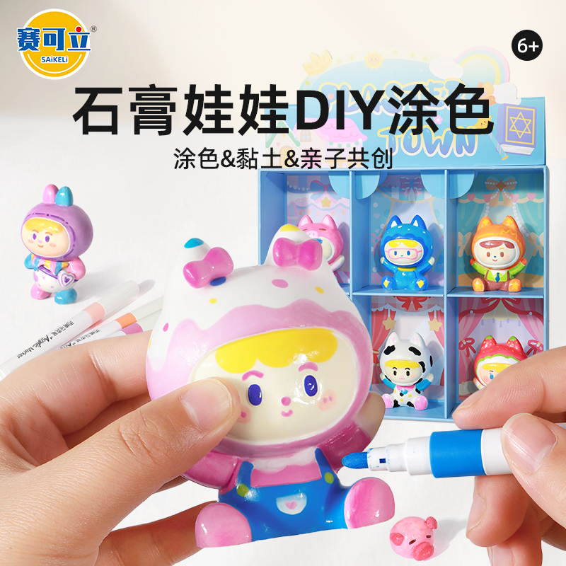 赛可立SAiKELi 魔法石膏彩绘石膏娃娃 萌萌兔/可可猫(包装盒秒变陈列橱窗)